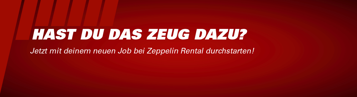 Du suchst eine neue Herausforderung, möchtest eigenverantwortlich in einem tollen Team arbeiten und deiner beruflichen Leidenschaft nachgehen? Dann starte jetzt bei uns durch! Zeppelin Rental erbringt Leistungen in den Bereichen Maschinen- und Gerätevermietung, temporäre Infrastruktur und Baulogistik. Und wir sagen von uns: Wir haben das Zeug dazu! Und du, hast du es auch? Dann bewirb dich bei uns. Wir freuen uns auf dich!